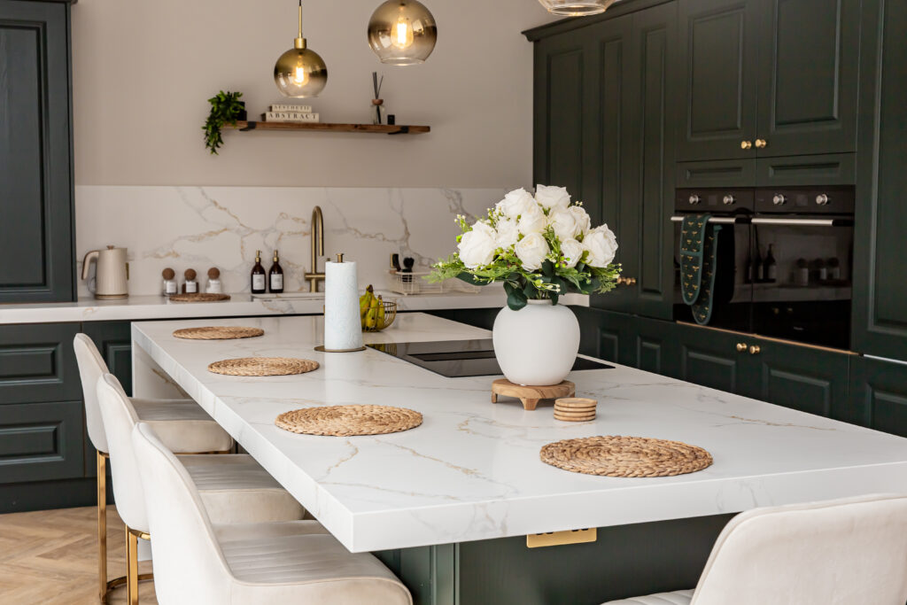 Quartz worktops have become increasingly popular over the years. Our premium quality quartz worktops are made from natural quartz bonded with resin. Quartz provides beautiful work surfaces which need very little maintenance and no additional sealing.